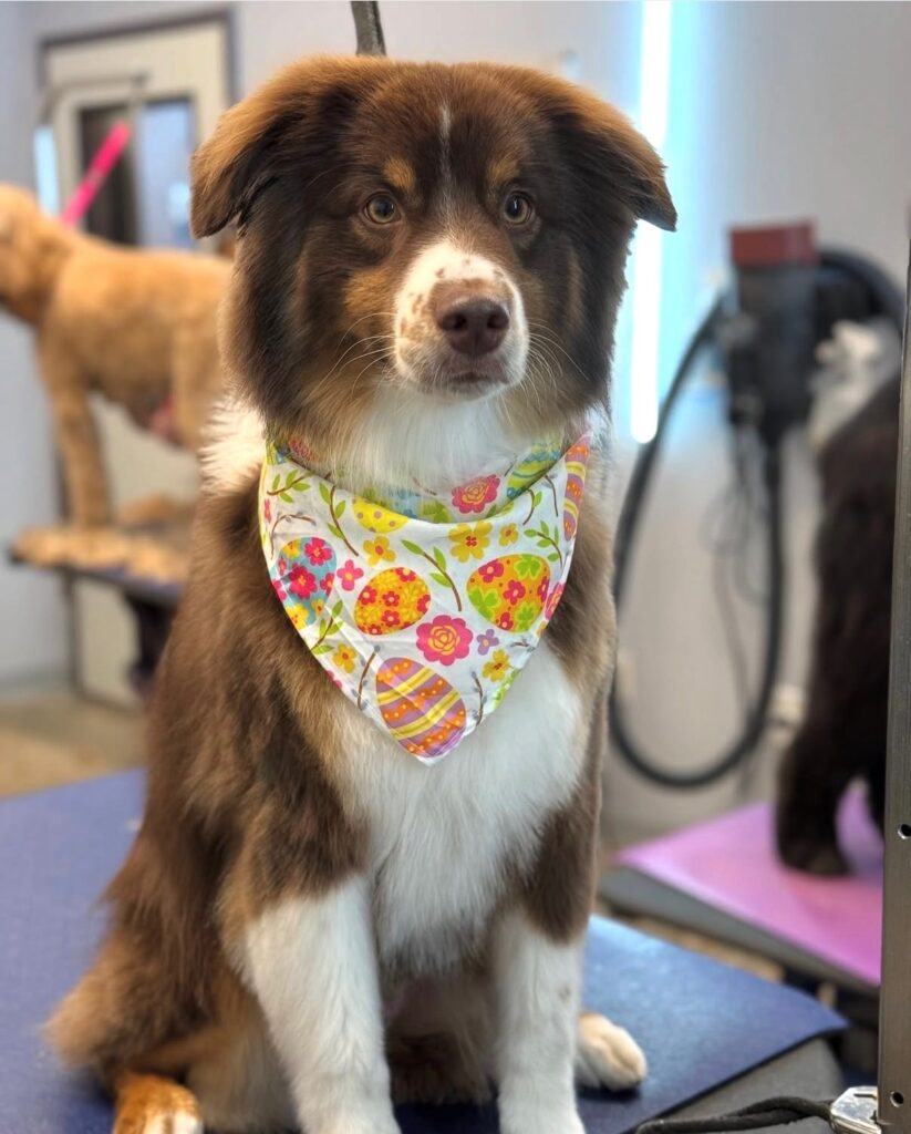 If your dog needs a full groom, basic groom (face, feet and tail), full service bath, or other services, we’ve got you covered.